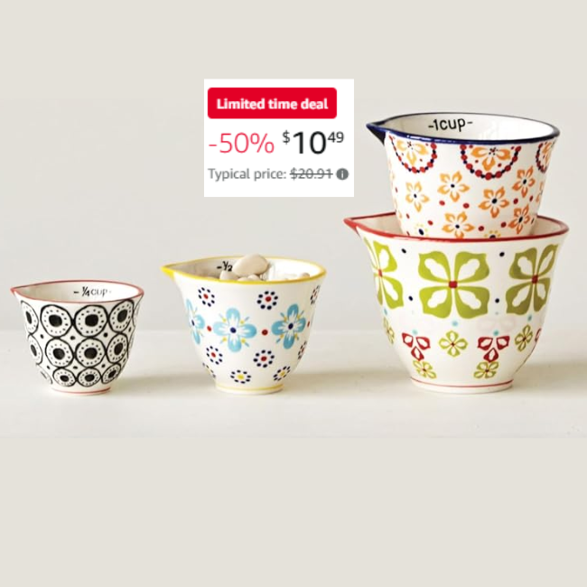 The Floral Hand Stamped Stoneware Measuring Cups are a beautiful addition to any kitchen. This deal offers 50% off the original price, making it an excellent opportunity to upgrade your cooking essentials. To take advantage of this limited-time offer, head to SHOP HERE and start shopping.Grab this deal before it’s gone ?