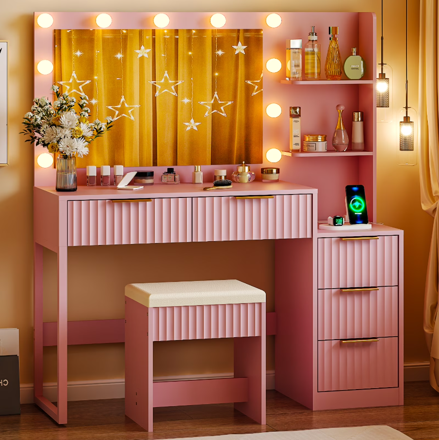 Flutted Makeup Vanity Table Set Sale: Save $51 at Walmart