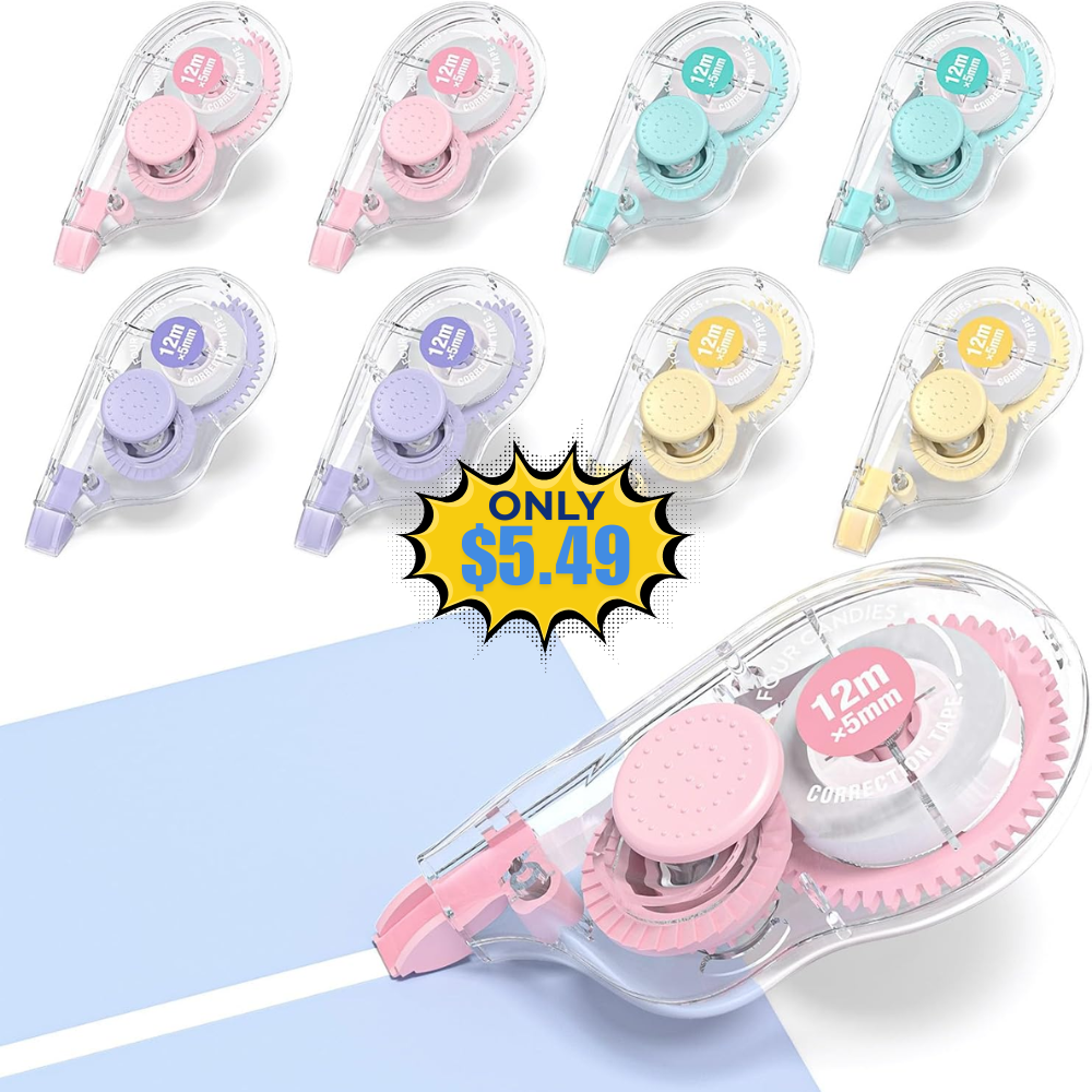Four Candies White Correction Tape Deal: 8 Pack at Tape – 50% Off