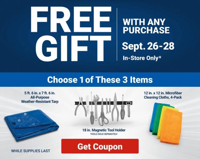 Harbor Freight Gift with Purchase Deal: Free Gift with Any Purchase
