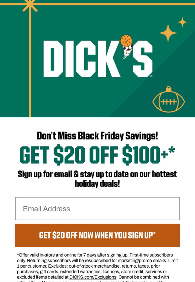 Dick’s Sporting Goods Sign Up Deal: Get $20 Off $100
