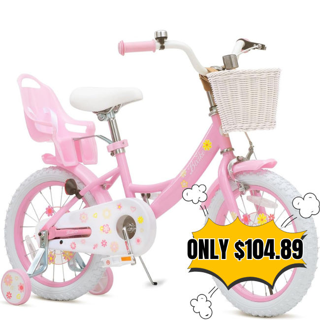 Save on this Girls Bike with Basket with Doll Seat without even using a coupon or promo code! This is awesome price for this product!Join our WhatsApp group, Telegram channel, and Facebook Group for kids’ deals, fashion deals, and other crazy deals.