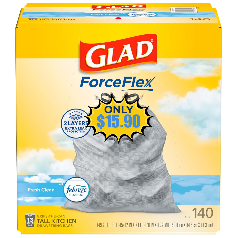 Save 20% off on this Glad ForceFlex Tall Kitchen Trash Bags using a 15% coupon with Subscribe & Save (Free to cancel anytime)! This is awesome price for this product!