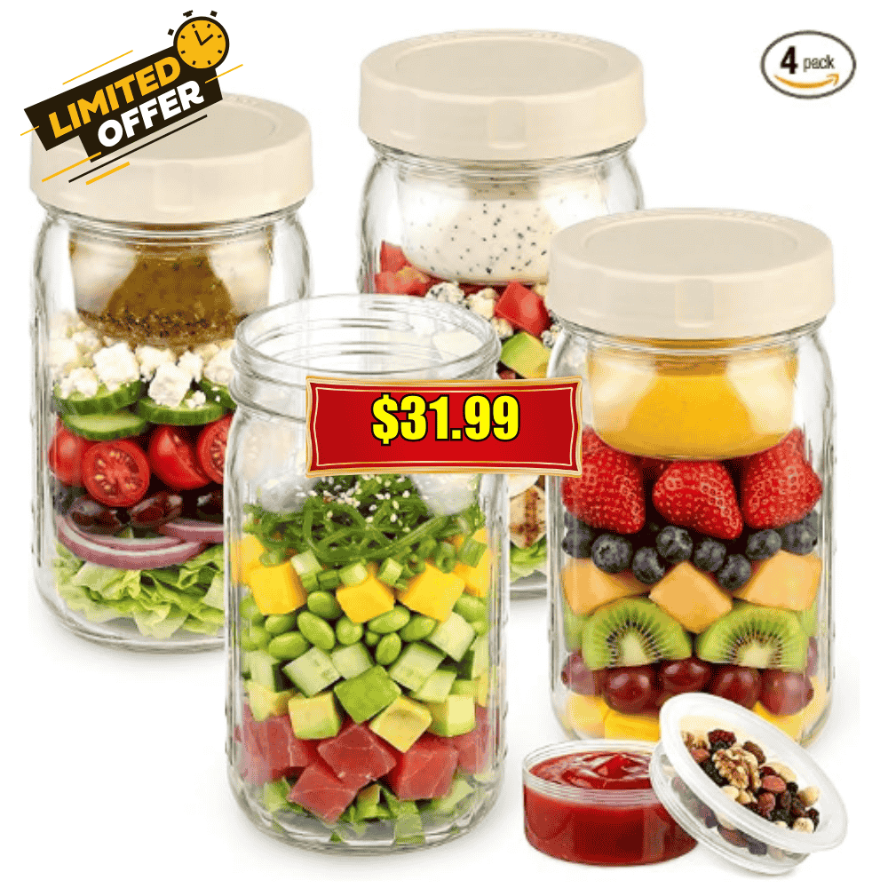 Glass Salad Jar 4 Pack 32oz with Lids Deal: Save on 4-Piece Set