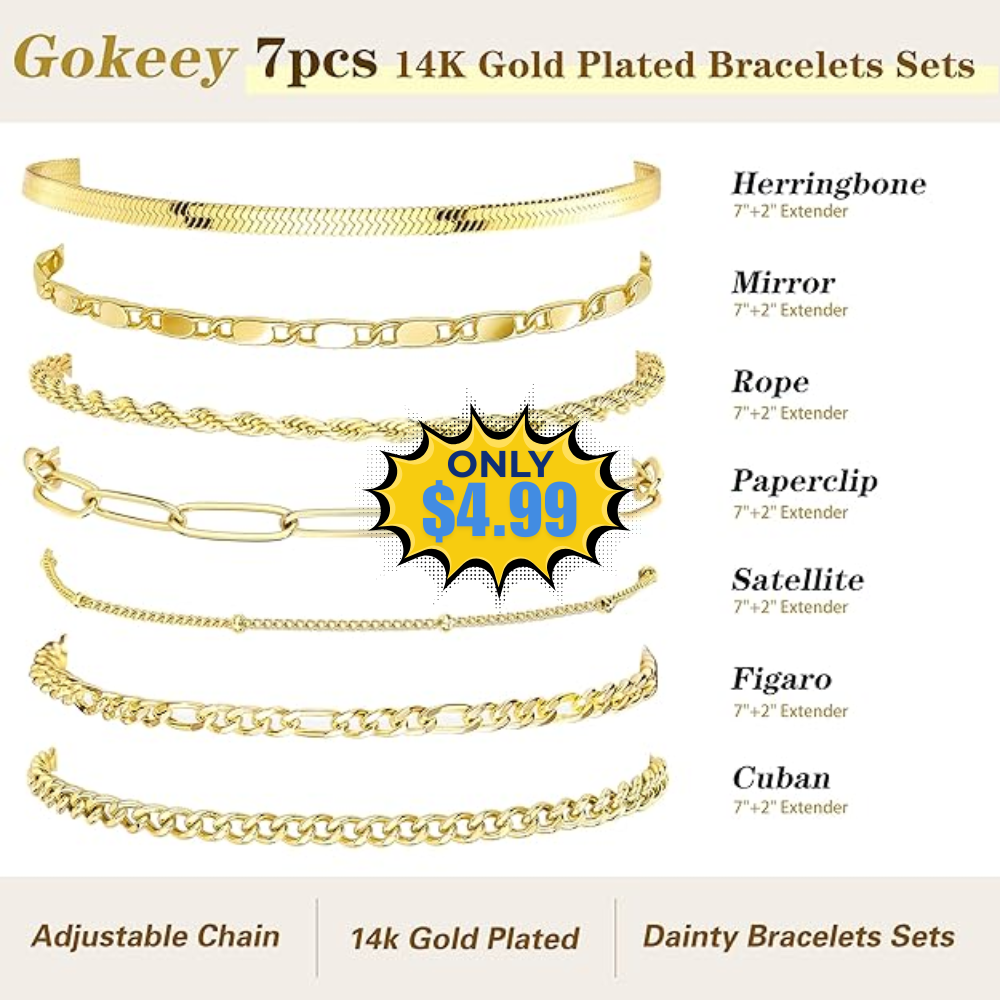 Gokeey 7PCS 14K Gold Plated Bracelets Sets Deal: Save 72%