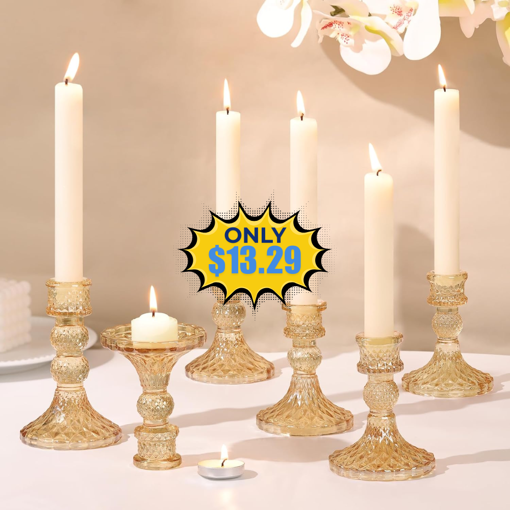 Save 50% off on this Gold Glass Candlestick Holders Set of 6 without even using a coupon or promo code! This is awesome price for this product!