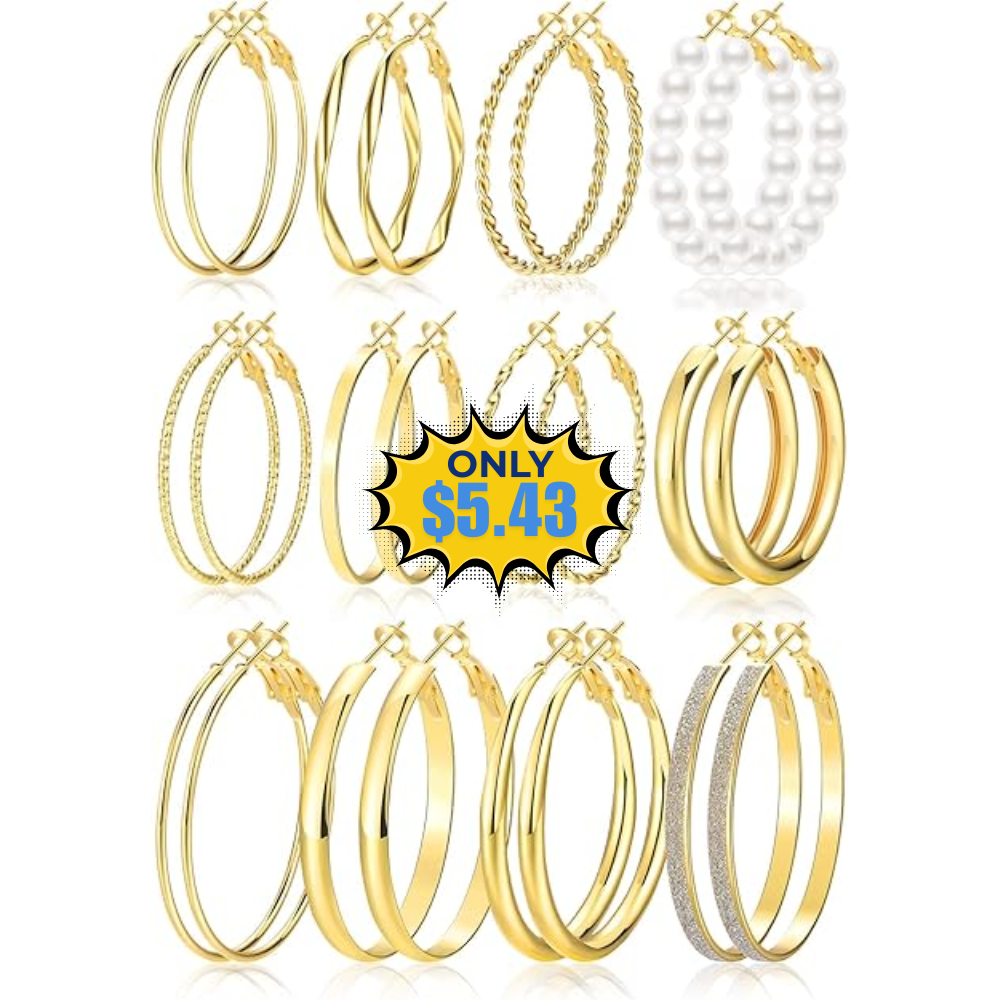Gold Hoop Earrings 12 Pairs Sale: Get 12 Pairs with Promo Code