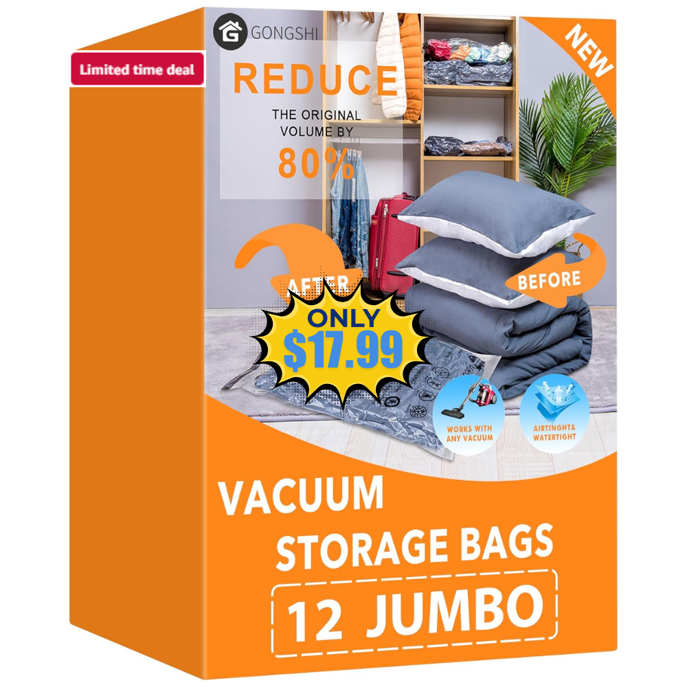 GONGSHI Vacuum Storage Bags 12 Jumbo Deal: Save 69%