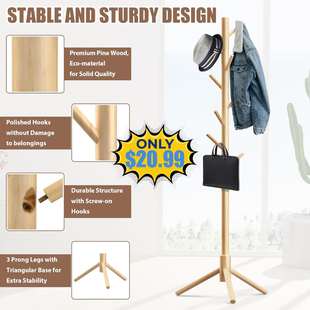 Save 31% off on this Haddockway Wooden Coat Rack Stand. Aplly $4.00 coupon to get this amazing discount. This is awesome price for this product!