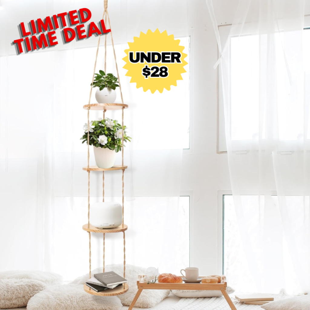 Save 30% off on this Hemp Rope Hanging Plant Shelf without even using a coupon or promo code! This is awesome price for this product!