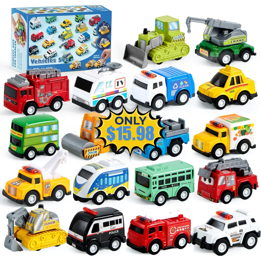 JOYIN 18 Pcs Pull Back City Cars and Trucks Toy Sale: Save 47% at JOYIN