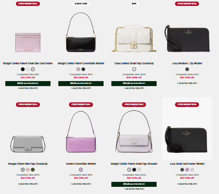 Jump over to Kate Spade where you can snag amazing savings on Kate Spade Cyber Monday Sale! You can save without even using a coupon or promo code!