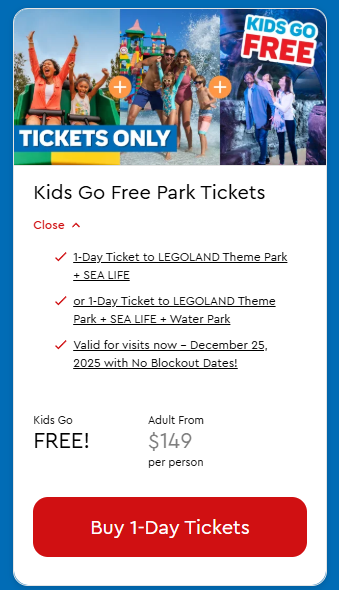 - Or go all in: LEGOLAND + SEA LIFE + Water Park – 1-Day Combo Ticket