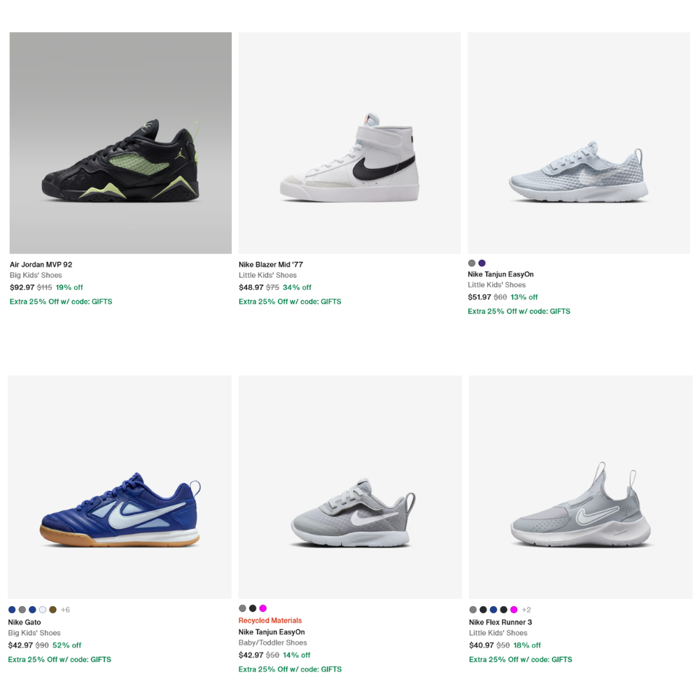 GIFTSCopy to ClipboardJump over to Nike where you can snag amazing savings on this Kids Shoes On Sale Up to 65% Off. Use promo code GIFTS to get this amazing discount.