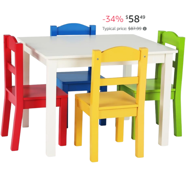 The Kids Wooden Table and 4 Chairs Set is a fantastic product for kids to play and learn. Right now, you can save 34% off the price without needing a coupon or promo code. This is an awesome price for a high-quality table and chairs set. The deal is available now, so be sure to get it while you can and save big on this great product.Grab this deal before it’s gone ?