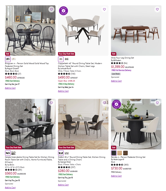 Jump over to Wayfair where you can snag amazing savings on this Kitchen & Dining Room Sets On Sale. You can save more even without using a coupon or promo code!