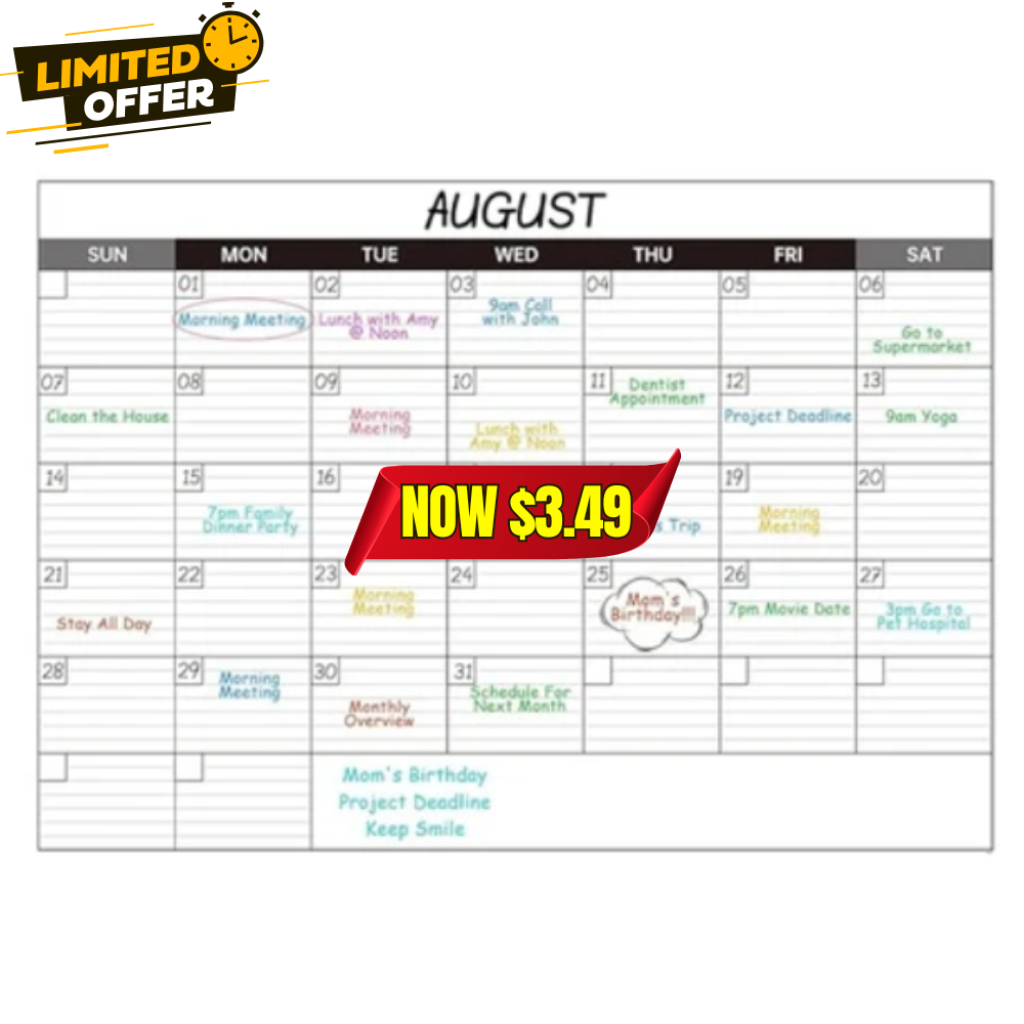 Save 50% off on this Large Dry Erase Wall Calendar without even using a coupon or promo code! This is awesome price for this product!Visited 44 times, 1 visit(s) today