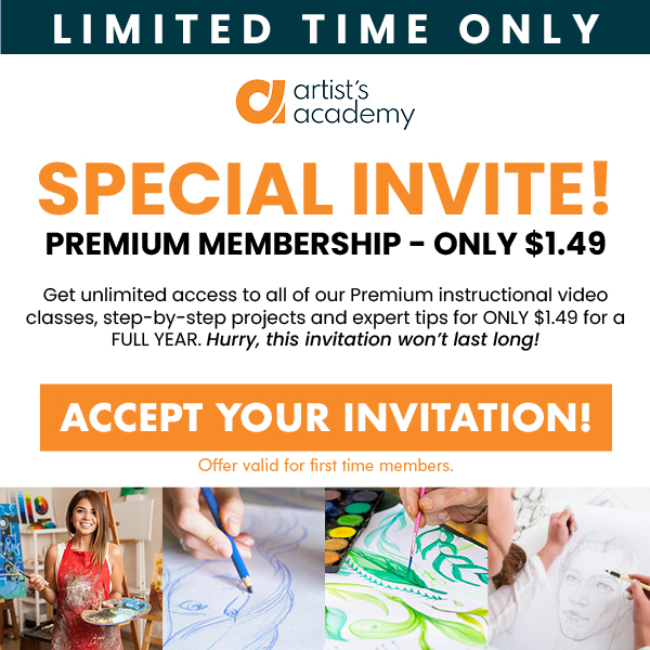 Upgrade to our Premium Membership for just $1.49 and enjoy unlimited access for a full year to our complete library of instructional art videos. Discover step-by-step lessons, explore proven creative techniques, and learn insider tips from experienced artists—all designed to help you grow your skills, boost your confidence, and elevate your creativity. For only $1.49 for an entire year, you’ll get nonstop learning, inspiration, and expert guidance in one convenient place. That’s an incredible value compared to the regular price of $102 per year—but this deal won’t last long.