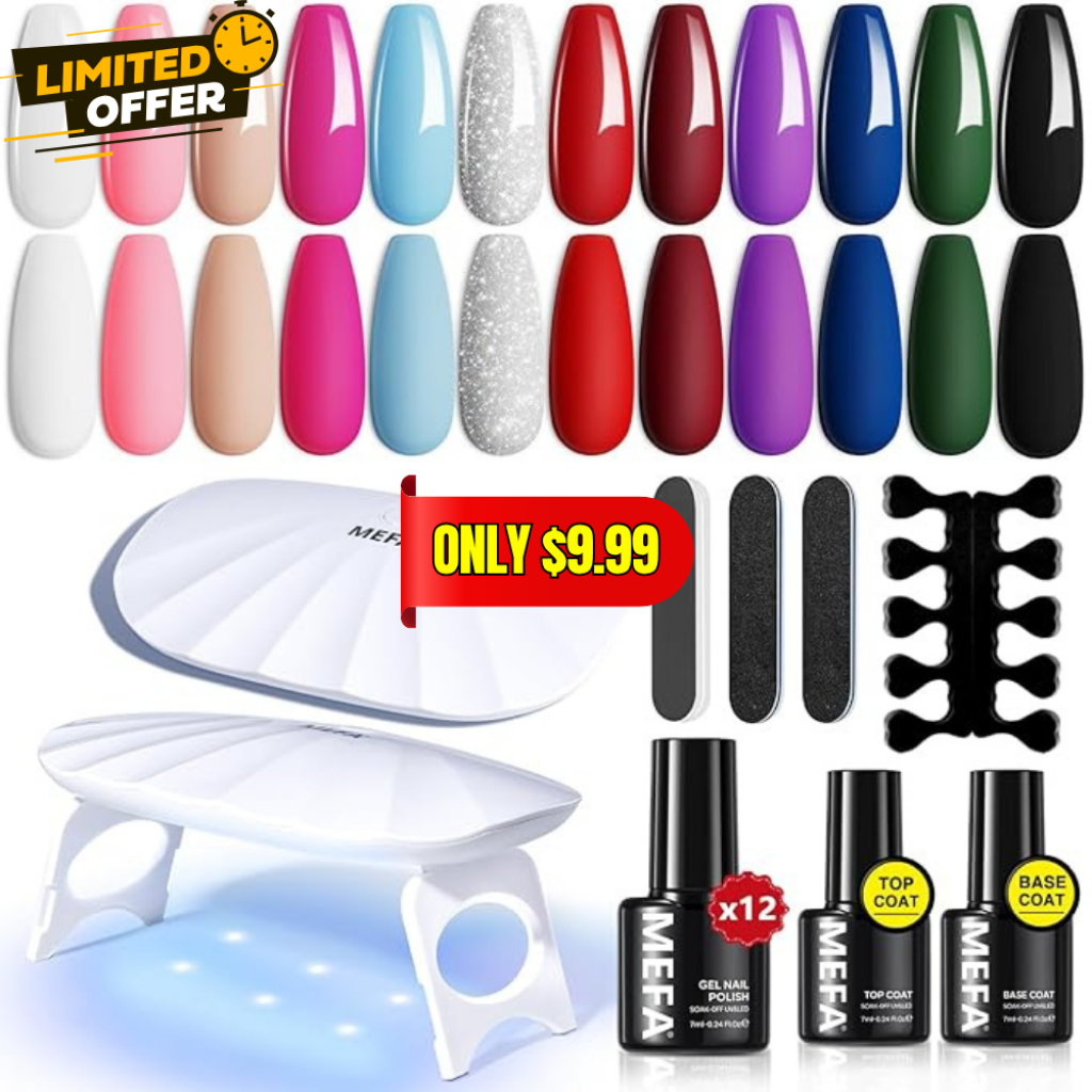 Save 23% off on this MEFA 19 Pcs Gel Nail Polish Kit with U V Light without even using a coupon or promo code! This is awesome price for this product!