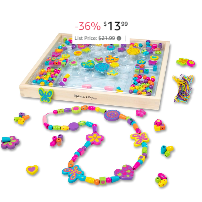 The Melissa & Doug Bead Bouquet Wooden Jewelry Making Kit is a fun and creative activity for kids and adults alike. This kit includes everything needed to create a beautiful wooden jewelry making kit. Right now, you can save 36% off the regular price without even using a coupon or promo code. This is an awesome price for this product and a great opportunity to try something new. Head to DealsFinders.com to shop this amazing deal and start creating your own unique jewelry pieces.Grab this deal before it’s gone ?