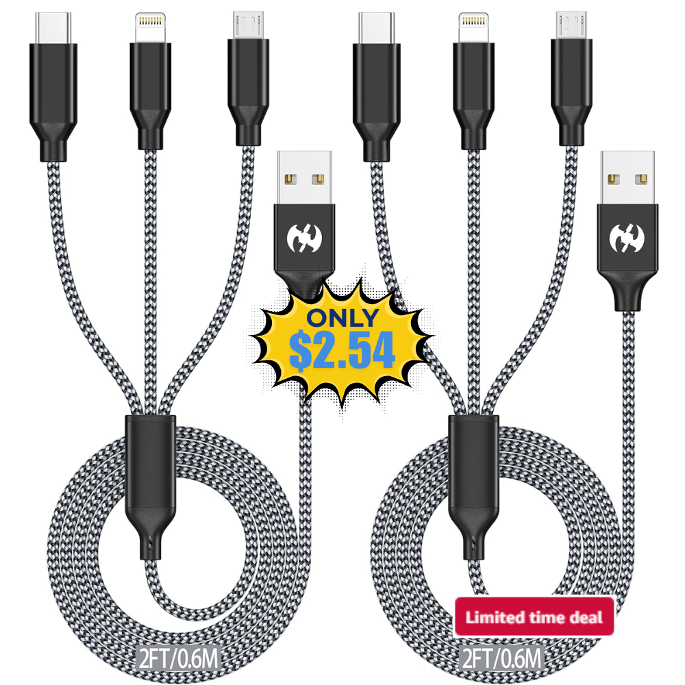 Multi Charging Cable 2ft 2Pack 3 in 1 Deal: Save 27% at DealsFinders.com