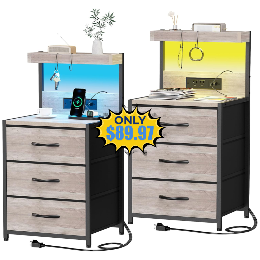 Night Stand Set 2 with LED Lights Deal: Save with Promo Code
