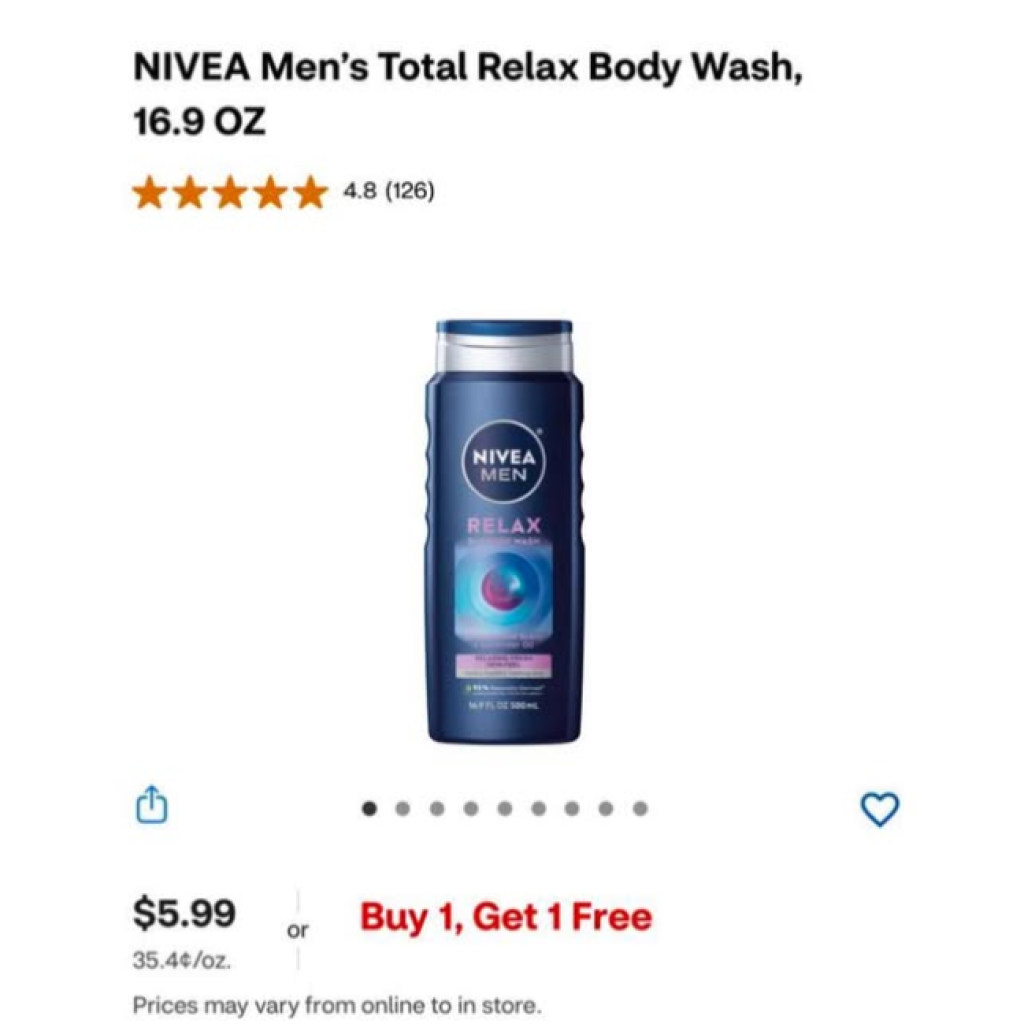 NIVEA Men Total Relax Body Wash 16.9 oz – Buy 1 Get 1 Free + $5 ExtraBucks