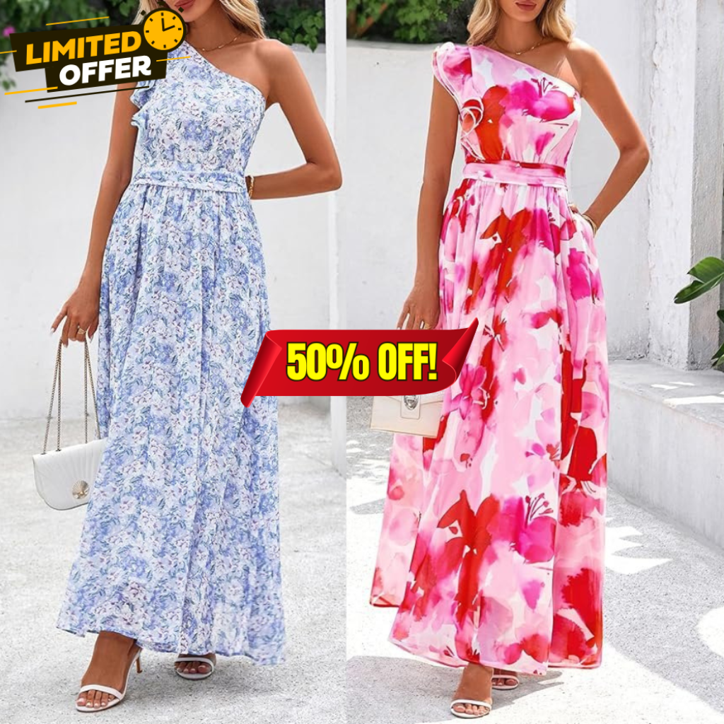 Save 50% off on this One Shoulder Floral Dresses without even using a coupon or promo code! This is awesome price for this product!