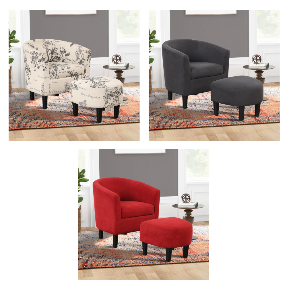 Jump over to Wayfair where you can snag amazing savings on this Pamplona 26″ W Upholstered Barrel Chair and Ottoman for only $127.99 (regularly $630.00) without even using a coupon or promo code!