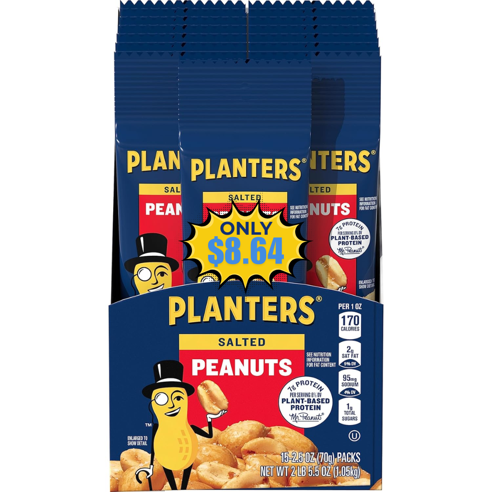 Save 28% off on this PLANTERS Salted Peanuts, 2.5 oz, 15-Pack when you opt to Subscribe & Save (Free to cancel anytime)! This is awesome price for this product!Join our WhatsApp group, Telegram channel, and Facebook Group for kids’ deals, fashion deals, and other crazy deals.