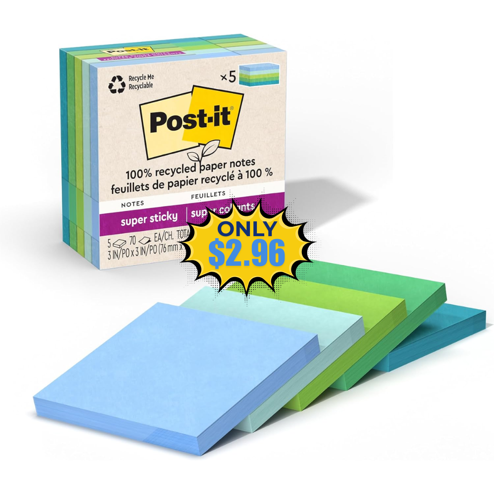 Save 67% off on this Post-it 100% Recycled Super Sticky Notes without even using a coupon or promo code! This is awesome price for this product!