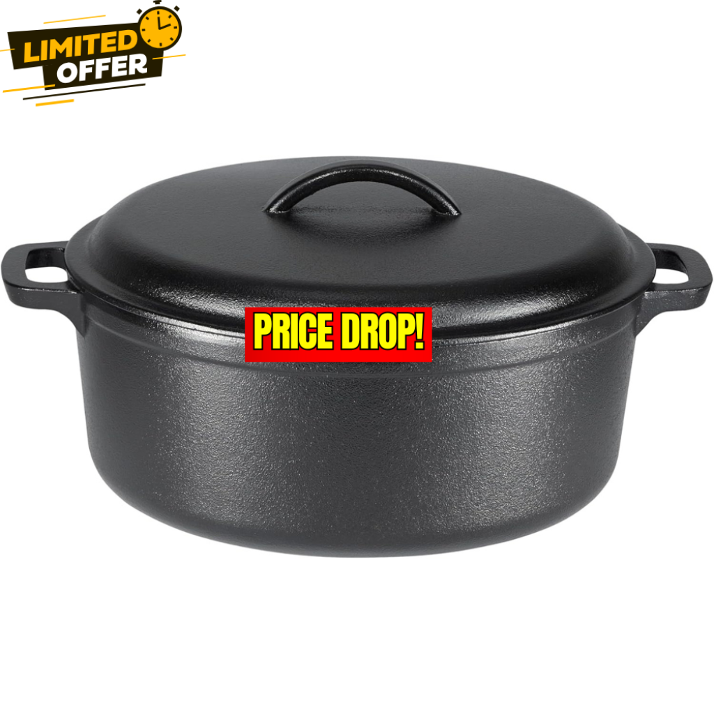 Save 32% off on this Pre-Seasoned Cast Iron Dutch Oven without even using a coupon or promo code! This is awesome price for this product!