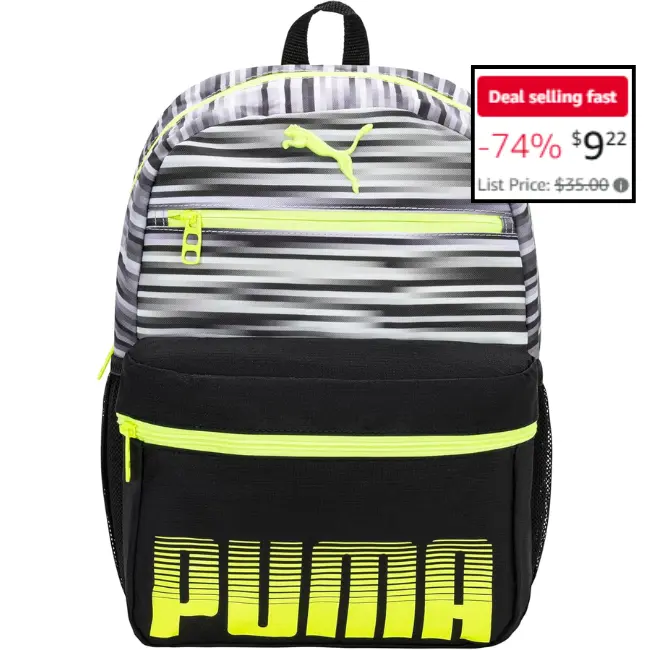The PUMA Kids’ Meridian Backpack is a great choice for kids who love to stay active. This backpack is designed to be durable and comfortable, making it perfect for school or outdoor adventures. Right now, you can save 74% instantly on this amazing backpack without needing a coupon or promo code. This limited-time offer won’t last long, so be sure to shop now and get an unbeatable price on the PUMA Kids’ Meridian Backpack.Grab this deal before it’s gone ?