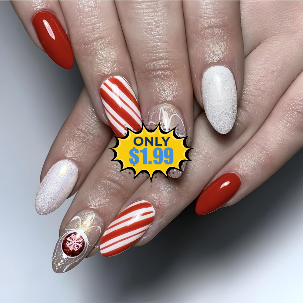 Save on this Red White Snowflake Stripe Press on Nails without even using a coupon or promo code! This is awesome price for this product! Save 50% at checkout!