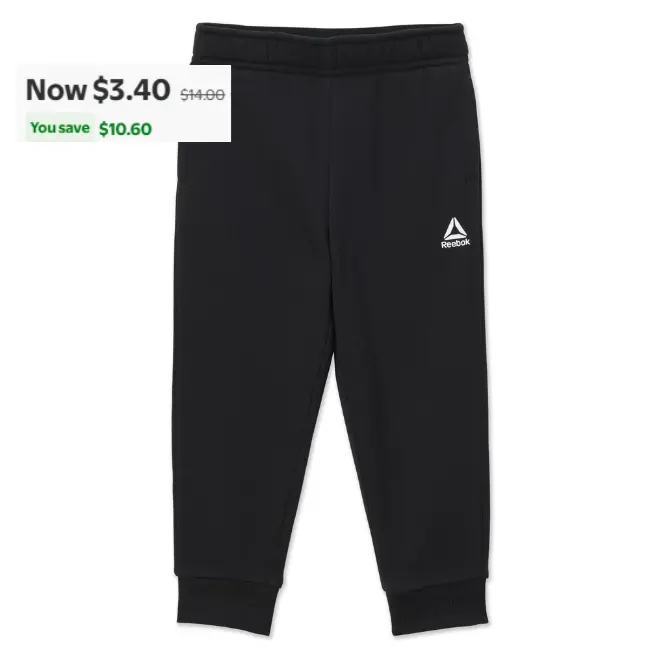 The Reebok Toddler Boy Delta Fleece Jogger is a must-have for keeping your little one warm and comfortable. Available in sizes 12M-5T, these joggers are perfect for playtime or lounging. Walmart is offering these for just $3.40, a fantastic deal with instant savings. Don’t miss out on this limited-time offer, as availability and pricing may change at any time. Stock up on these cozy joggers while they’re at this unbeatable price!Grab this deal before it’s gone ?