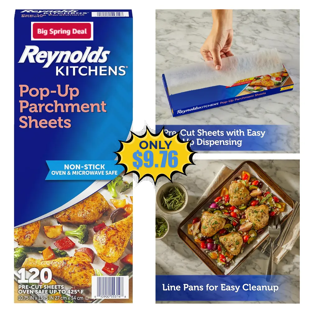 Save 21% off on this Reynolds Pop-Up Parchment Paper Sheets when you opt to Subscribe & Save (Free to cancel anytime)! This is awesome price for this product!Join our WhatsApp group, Telegram channel, and Facebook Group for kids’ deals, fashion deals, and other crazy deals.