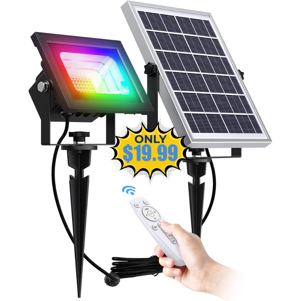 RGB Solar Flood Lights Outdoor Promo: Save with 37HHZHXD Code