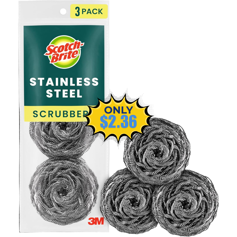 Save 31% off on this Scotch-Brite Stainless Steel Scrubbers with Subscribe & Save (Free to cancel anytime)! This is awesome price for this product!