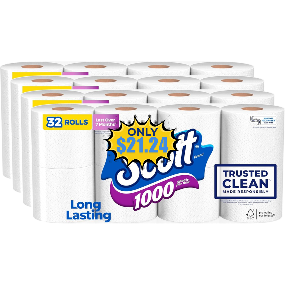 Save 20% on this Scott 1000 Toilet Paper, 32 Rolls using a 15% coupon with Subscribe & Save (Free to cancel anytime)! This is awesome price for this product!
