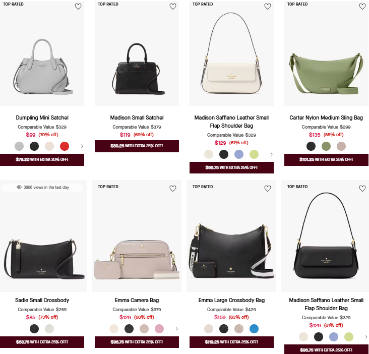 Select Bags and Handbags Sale: 70% OFF + Extra 20% at Select Bags and Handbags