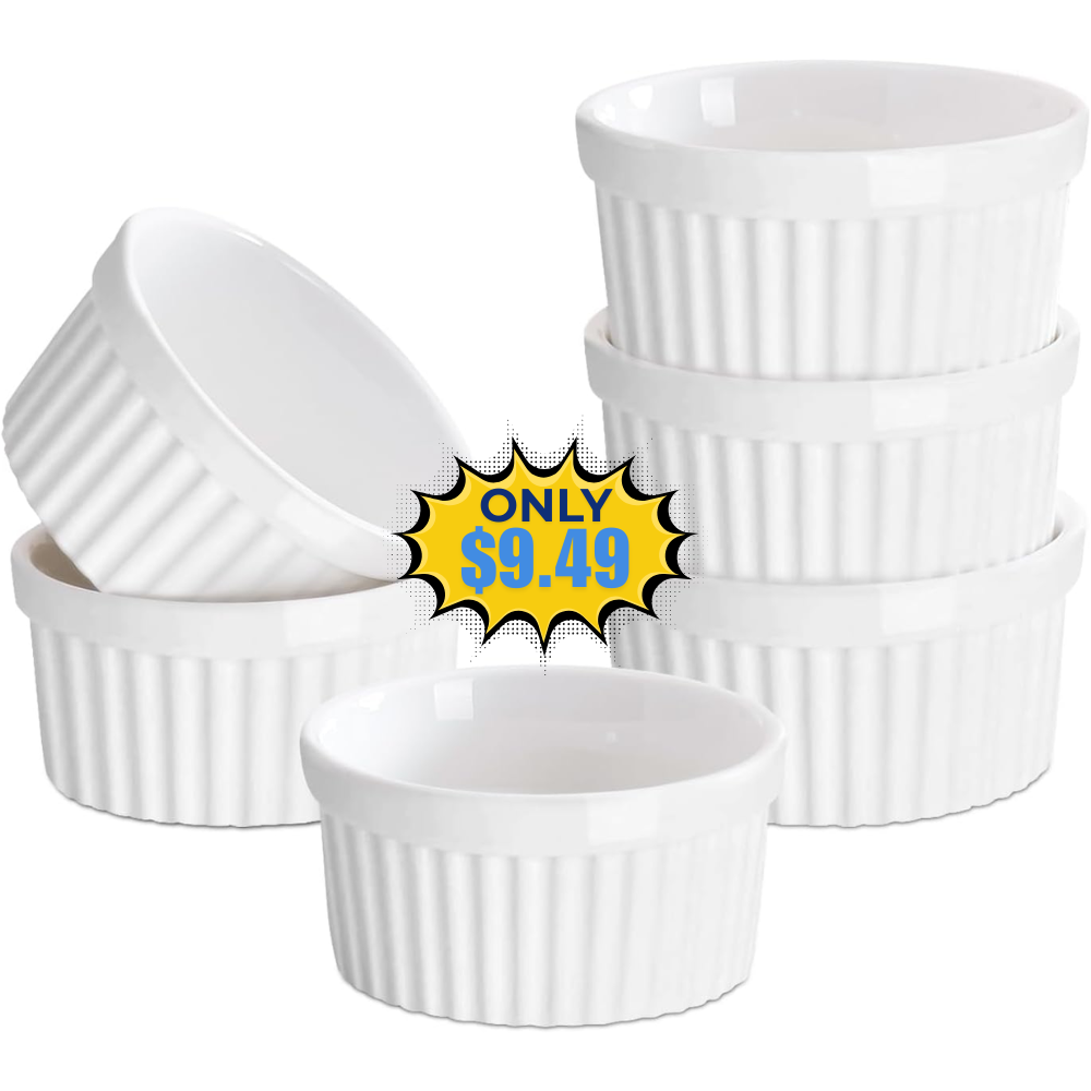 Save 50% off on this Set of 6, 8oz Ceramic Ramekins without even using a coupon or promo code! This is awesome price for this product!