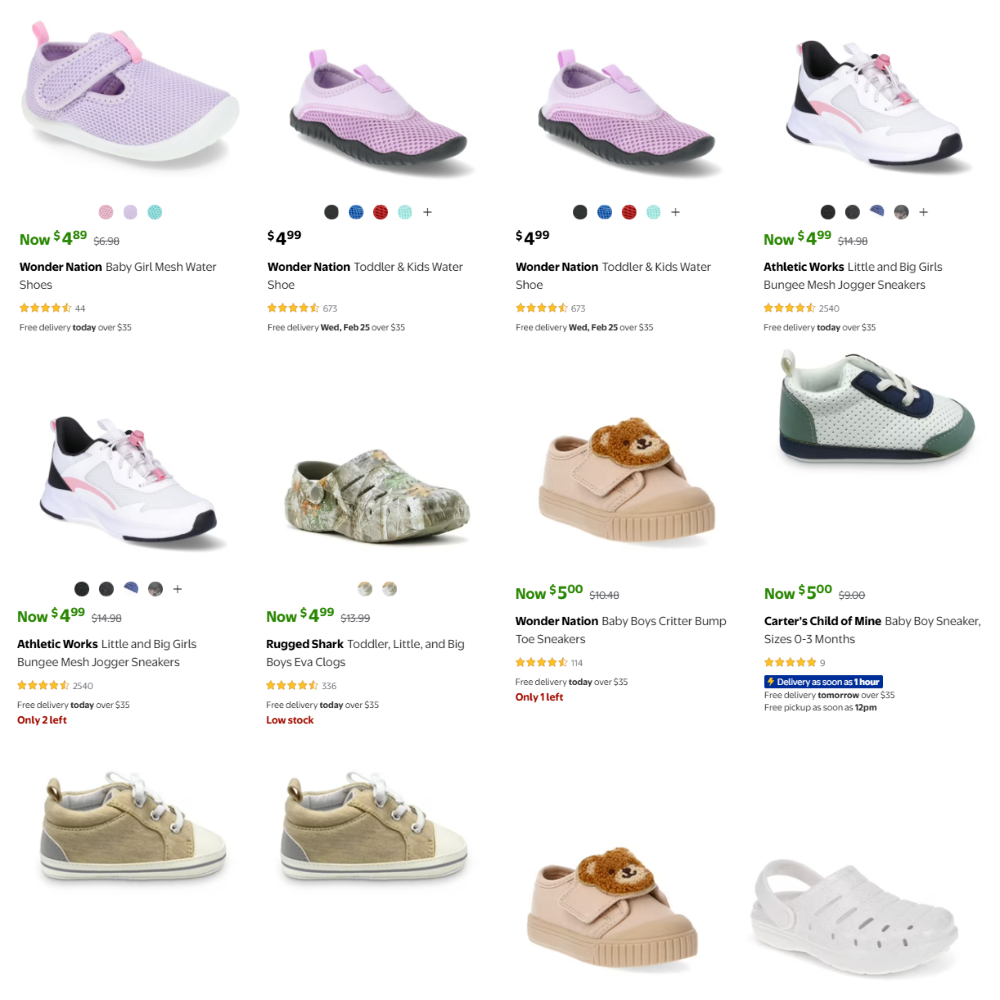 Walmart is having a shoe clearance sale with prices starting at $4.89. These shoes were originally $6.98, so you can save without using a coupon or promo code. You can find these deals at Walmart, where you can shop and save on amazing shoes. This sale is a great opportunity to snag savings on shoes you need, all without using a coupon or promo code.Grab this deal before it’s gone ?