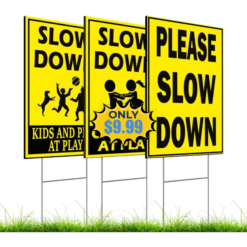 Save on this Slow Down Kids & Pets At Play Signs without even using a coupon or promo code! This is awesome price for this product!