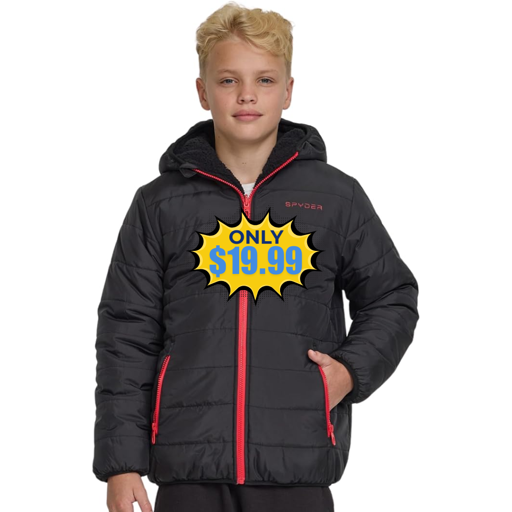 The Spyder Reversible Boys Puffer Jacket is a great product that's now available at a discounted price. You can save 67% off this jacket without needing a coupon or promo code. This is an awesome price for the Spyder Reversible Boys Puffer Jacket, making it a great deal for shoppers. The jacket is reversible, offering versatility and practicality, and with the discount, it's an even more attractive purchase.Join our WhatsApp group, Telegram channel, and Facebook Group for kids’ deals, fashion deals, and other crazy deals.