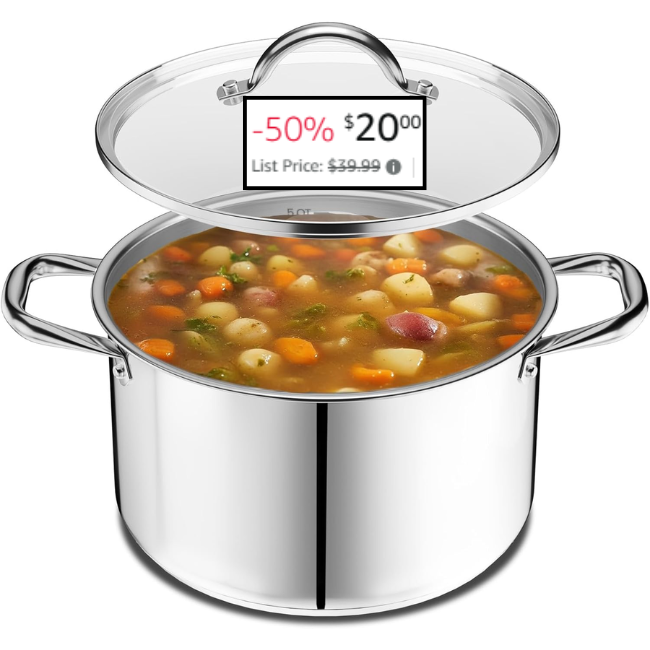 The Stainless Steel Stockpot with Tempered Glass Lid 5 Quart is a must-have for any home cook. This high-quality stockpot features a durable stainless steel construction and a tempered glass lid for easy monitoring of cooking progress. For a limited time, you can save 50% on this amazing stockpot at Stainless Steel Stockpot. Simply shop now and enjoy the savings instantly—no coupon or promo code required! This offer won’t last long, so act fast to get the best deal on this essential kitchen appliance.Grab this deal before it’s gone ?