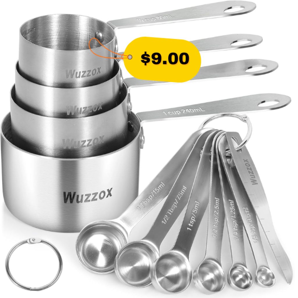 Save on this Steel Measuring Cups & Spoons Set by using a promo code BMA99EV8! This is awesome price for this product!