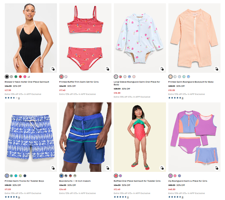 Get ready for summer with amazing savings on swimwear for the whole family at Old Navy. You can save up to 30% off without using a coupon or promo code. Old Navy is offering incredible deals on their swimwear collection, making it the perfect time to stock up for the season. With discounts this big, you can get the whole family ready for summer fun without breaking the bank.