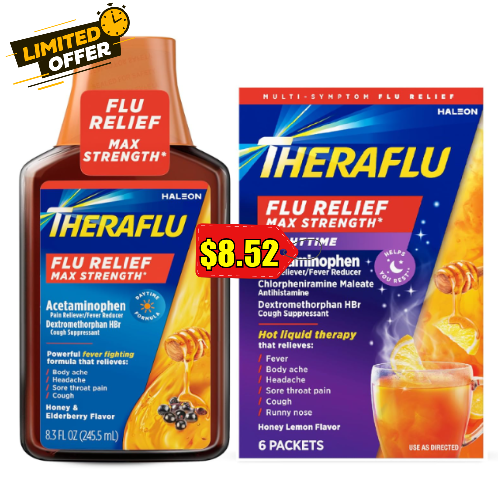 Clip CouponCopy to ClipboardTheraflu Max Strength Daytime Flu Symptom Relief is a medication designed to alleviate flu symptoms. This product is perfect for those looking to relieve their daytime flu symptoms. By clipping the coupon and opting to subscribe and save, you can get this product at an awesome price. This is a great opportunity to stock up on flu relief medication without breaking the bank.Grab this deal before it’s gone ?