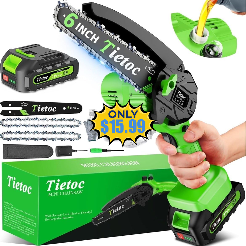 TIETOC343434Copy to ClipboardSave 28% off on this Tietoc 6 Inch Mini Electric Chainsaw. Use promo code TIETOC343434 to get this amazing discount. This is awesome price for this product!