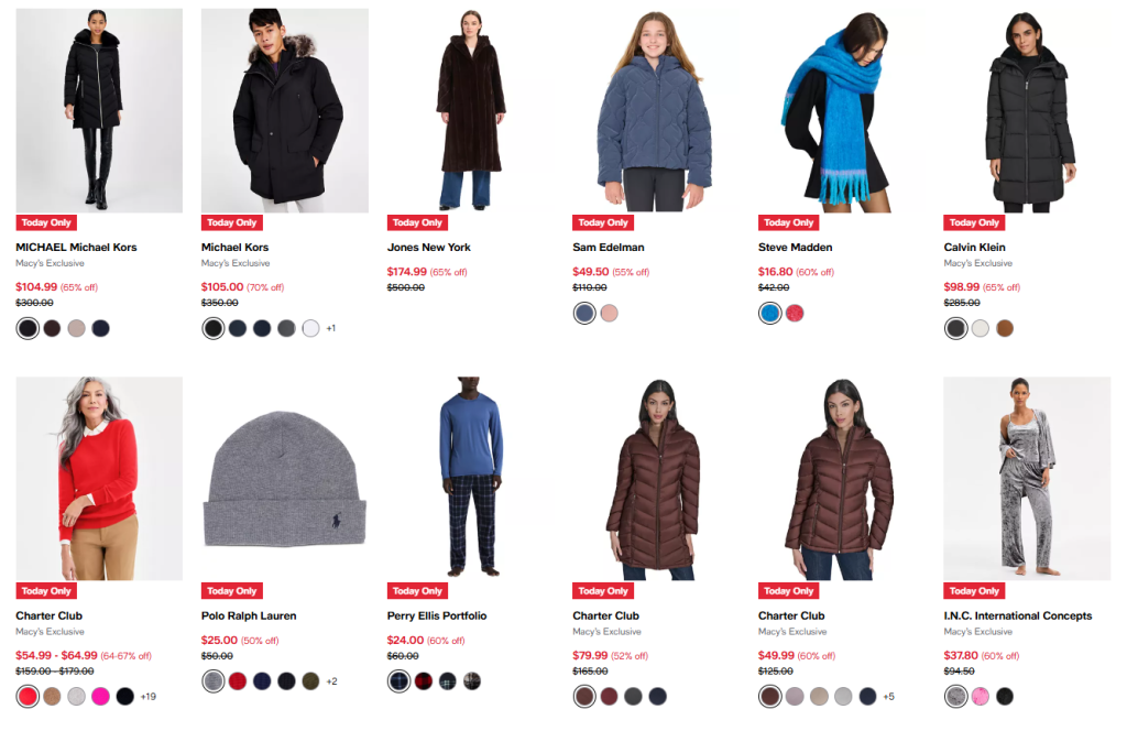 Jump over to Macy’s where you can snag amazing savings on this Today Only! Flash Sale Coats, Sweaters and More Up to 60% Off. You can save more even without using a coupon or promo code!